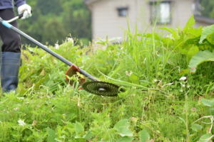 草刈り=刈払機を使用して、雑草を丁寧に刈ります。